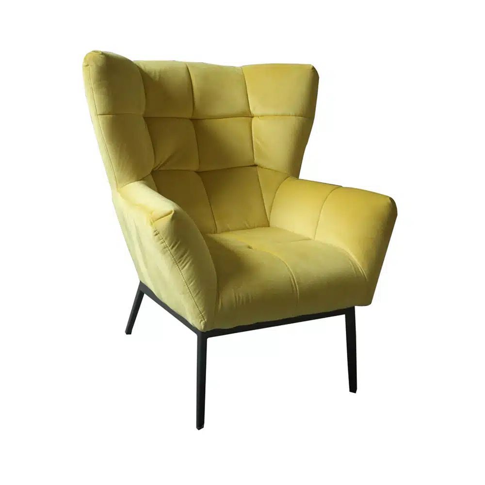 כורסת אירוח מעוצבת ונוחה, ריפוד בד קטיפה, רגל מתכת שחורה