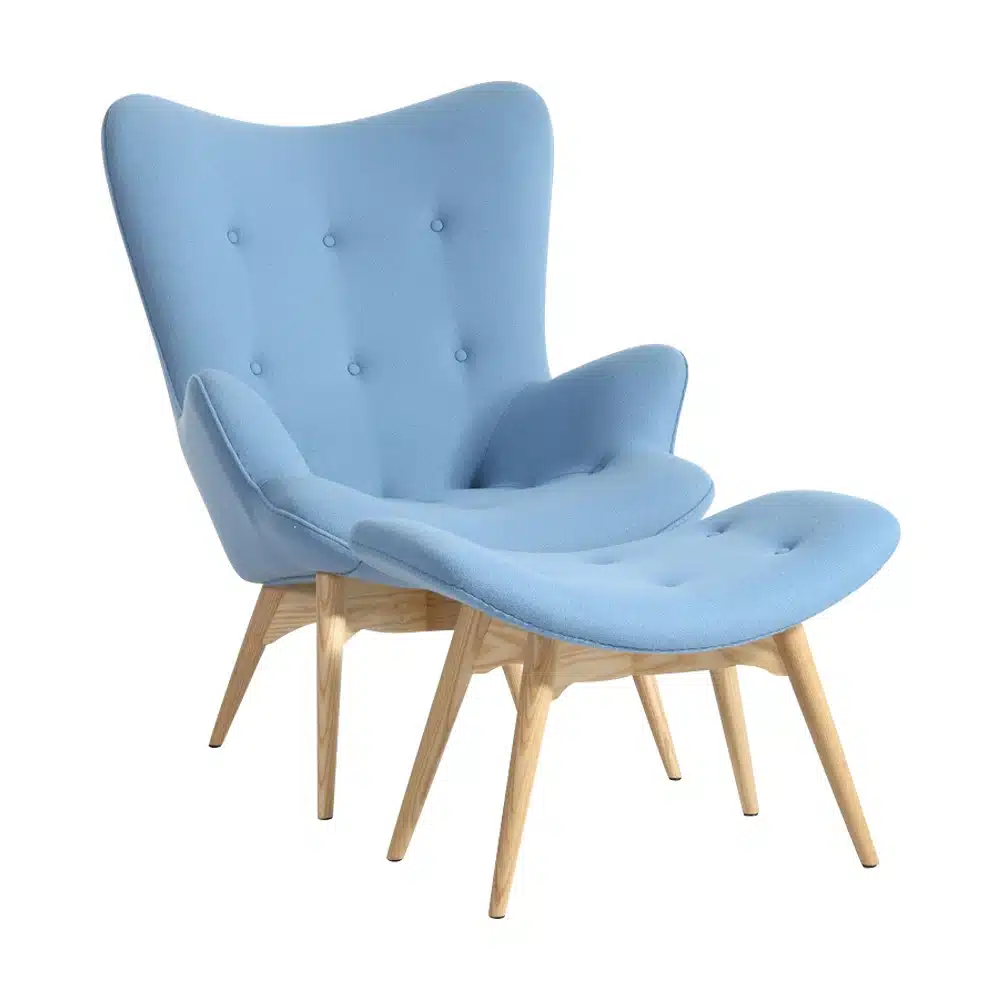 כורסת אירוח מעוצבת לא כולל הדום רגליים (נמכר בנפרד), ריפוד בד, רגלי עץ