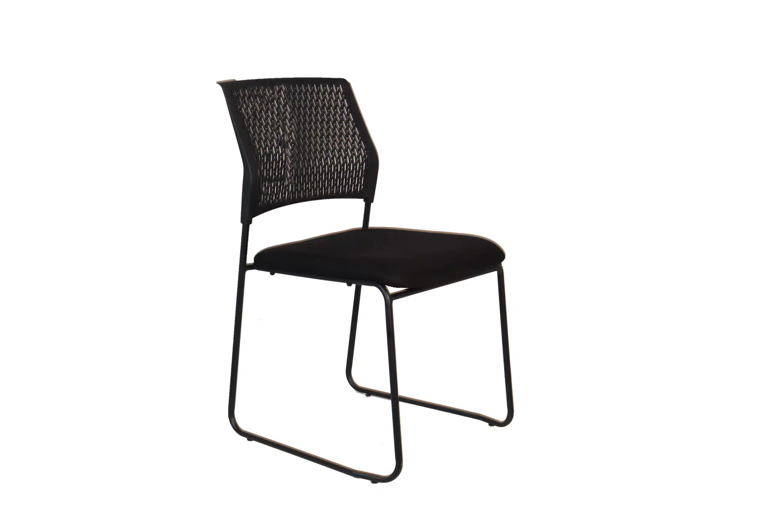 כיסא אורח גב פלסטיק מושב מרופד בד שחור גב שחור