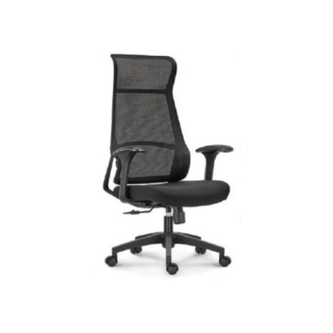 כסא מנהלים מעוצב עם גב גבוה, ריפוד בד רשת, מנגנון נדנוד, בסיס ניילון