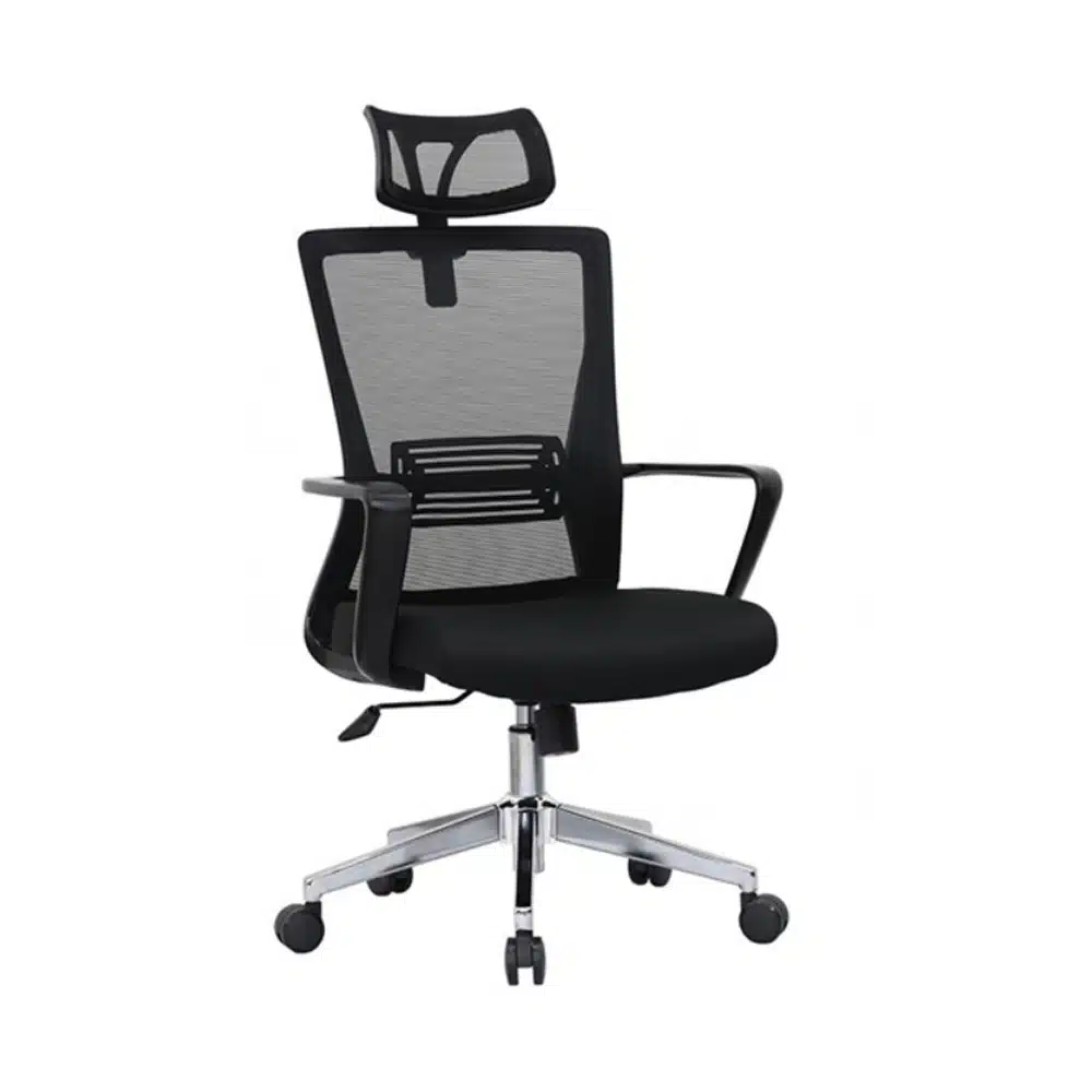 כסא מנהלים עם משענת ראש, גב רשת וידיות קבועות